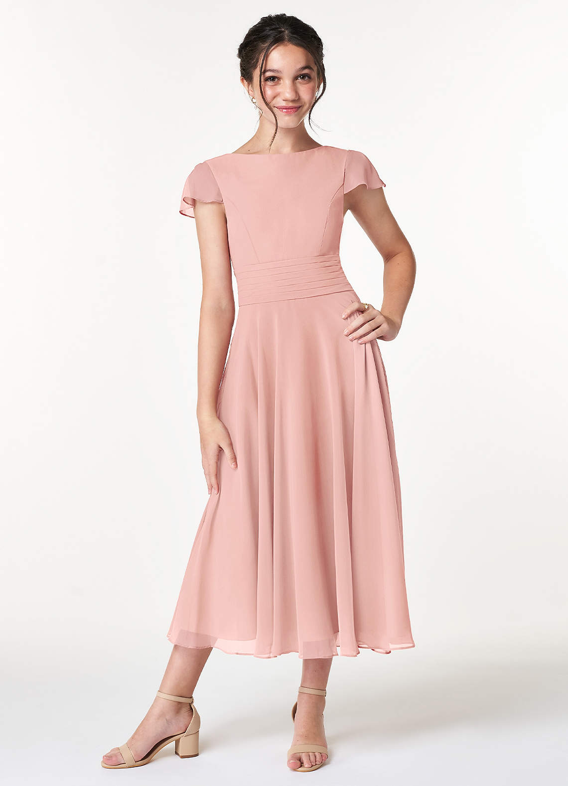 Vestido de Eucalipto de Gasa de Corte en A con Lazo