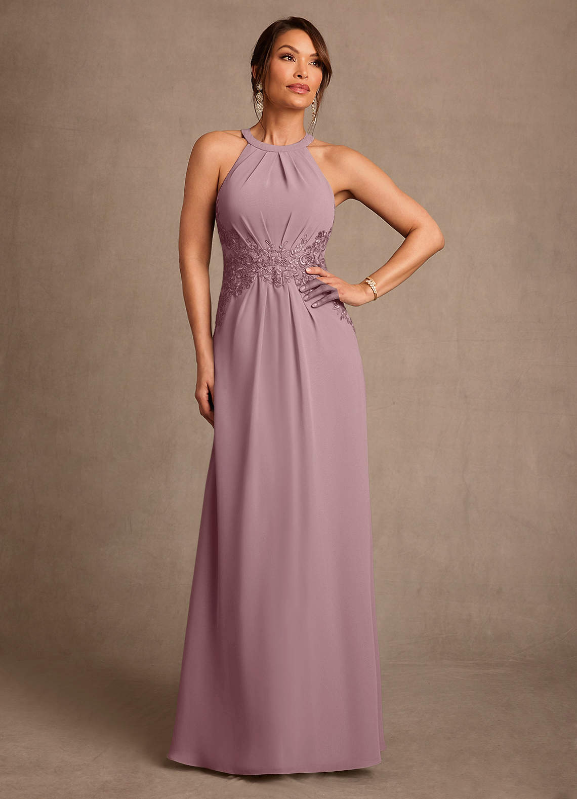 Vestido de Rosa Polvorienta de Gasa de Corte en A con Encaje