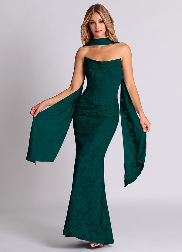 Vestido de Oliva de Satén Elástico de Corte Sirena Convertible con Plisado