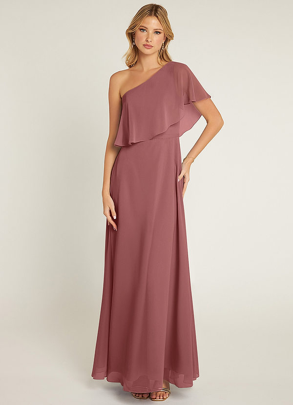 Vestido de Amatista de Gasa de Corte en A con Manga larga