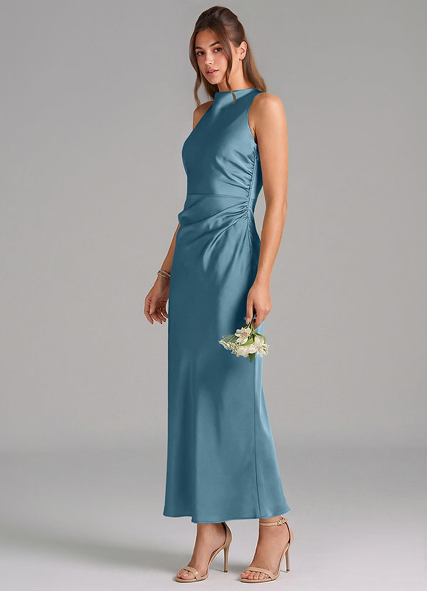 Vestido de Bermudas de Satén Elástico de Corte Sirena con Plisado