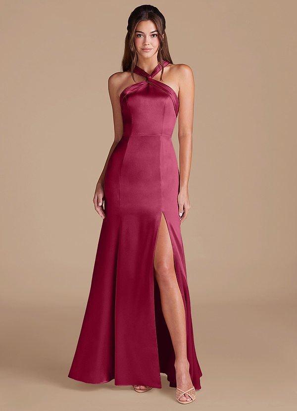 Vestido de Borgoña de Satén Metálico de Corte Sirena con Plisado