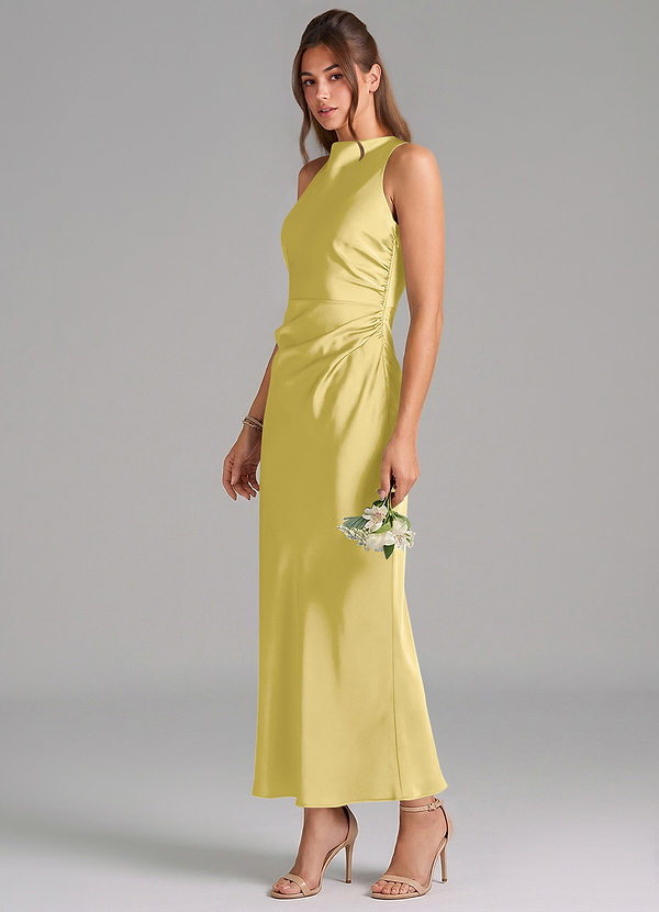 Vestido de Canario de Satén Elástico de Corte Sirena con Plisado