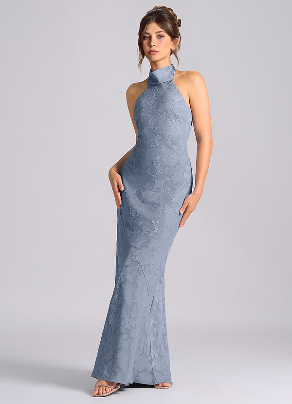 Vestido de Azul Polvoriento de Gasa de Corte Sirena con Cuello Alto
