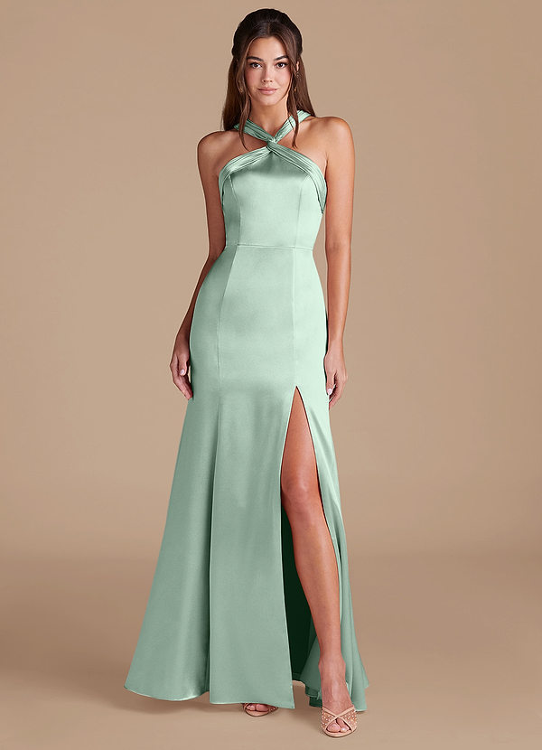 Salvia Polvoriento Or Agave Satén Metálico Vestidos dama de honor
