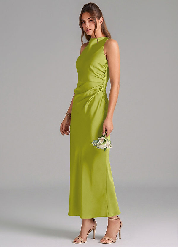 Vestido de Hierba De Limón de Satén Elástico de Corte Sirena con Plisado
