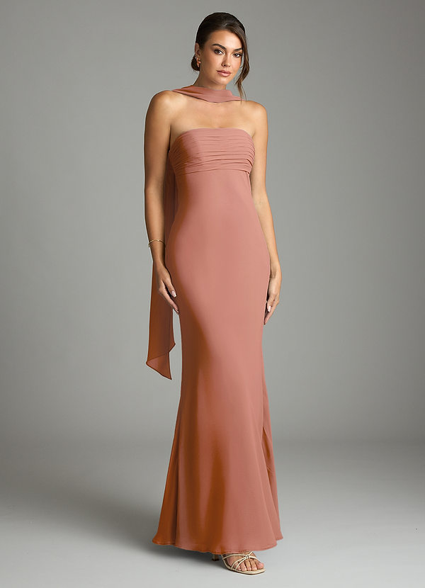 Vestido de Mai Tai de Gasa de Corte Recto Convertible con Sin tirantes