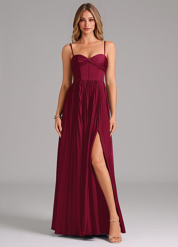 Vestido de Borgoña de Satén Elástico de Corte en A con Escote de Corazón