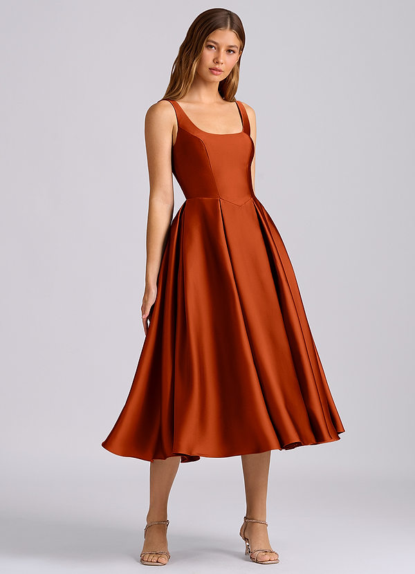 Vestido de Pimenton de Satén Elástico de Corte en A con Plisado