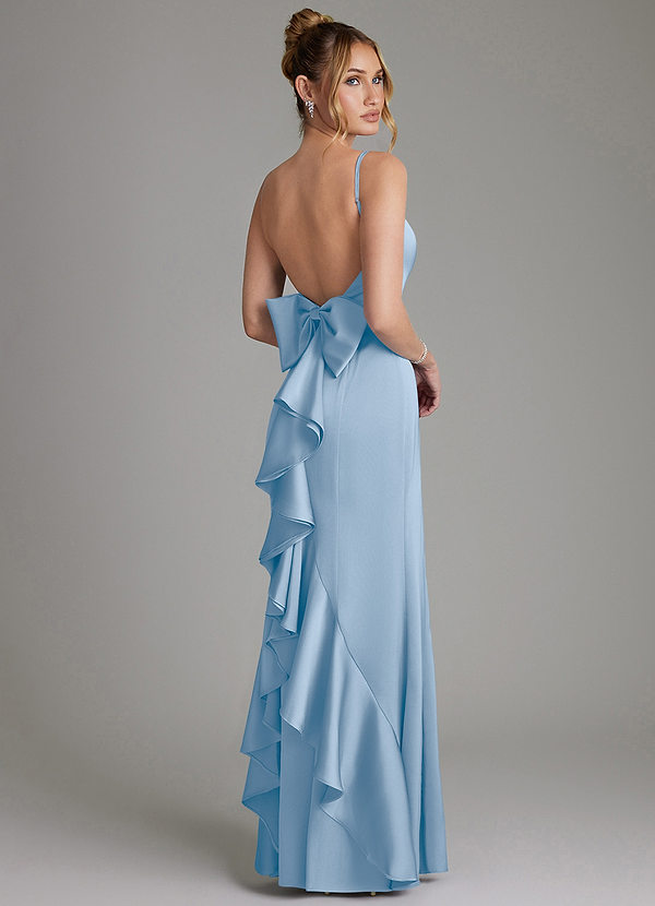 Vestido de Azul Pálido de Satén Elástico de Corte Sirena con Lazo