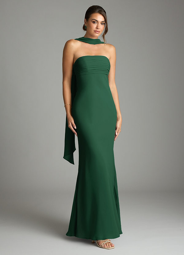 Vestido de Verde Oscuro de Gasa de Corte en A Convertible con Vestidos sin tirantes