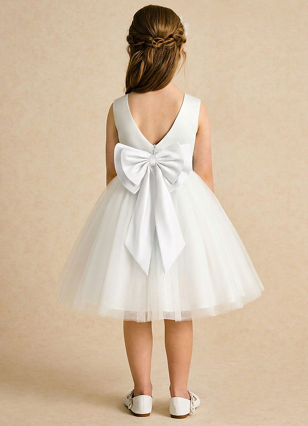 Vestido de Blanco de Tul de Corte en A con Lazo