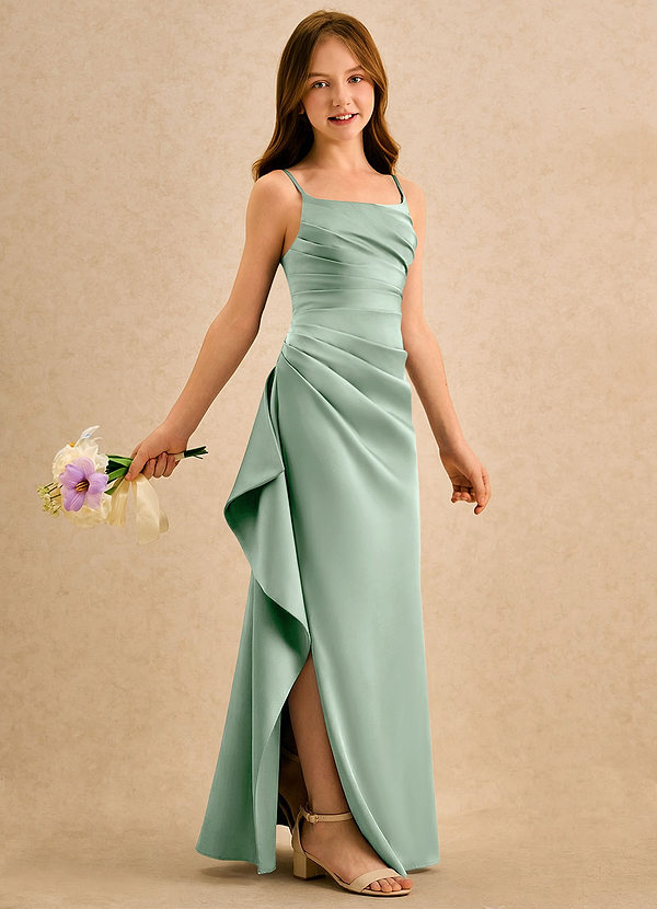 Vestido de Agave de Satin Mate de Corte en A con Lazo