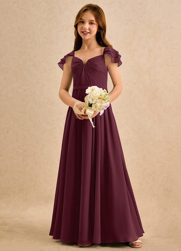 Vestido de Cabernet de Gasa de Corte en A con Con mangas