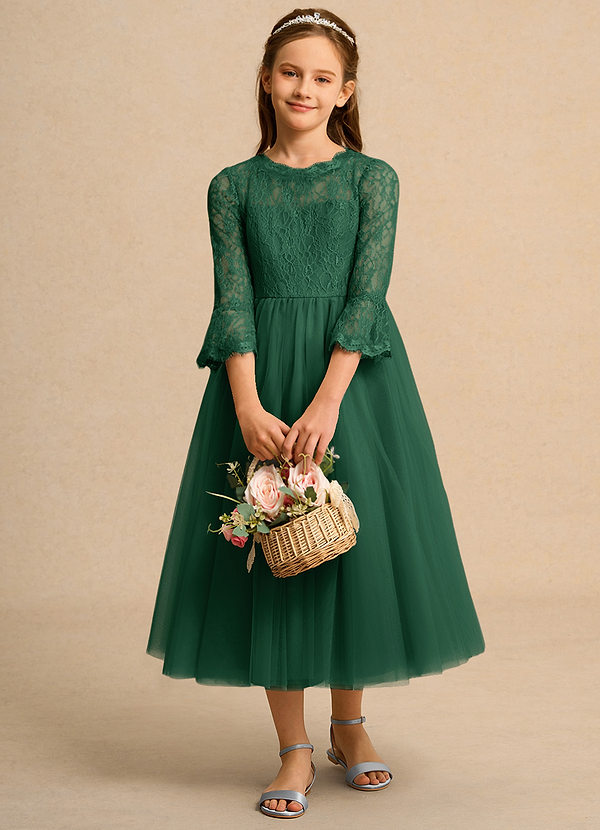 Vestido de Verde Oscuro de Encaje de Corte En A