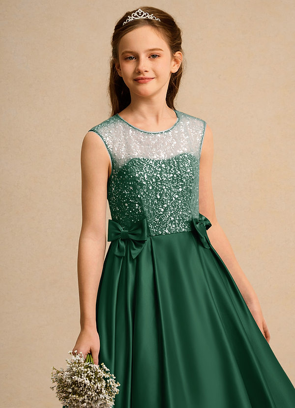 Vestido de Verde Oscuro de Satin Mate de Princesa con Lazo