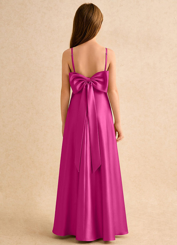 Vestido de Fucsia de Satin Mate de Corte en A con Lazo