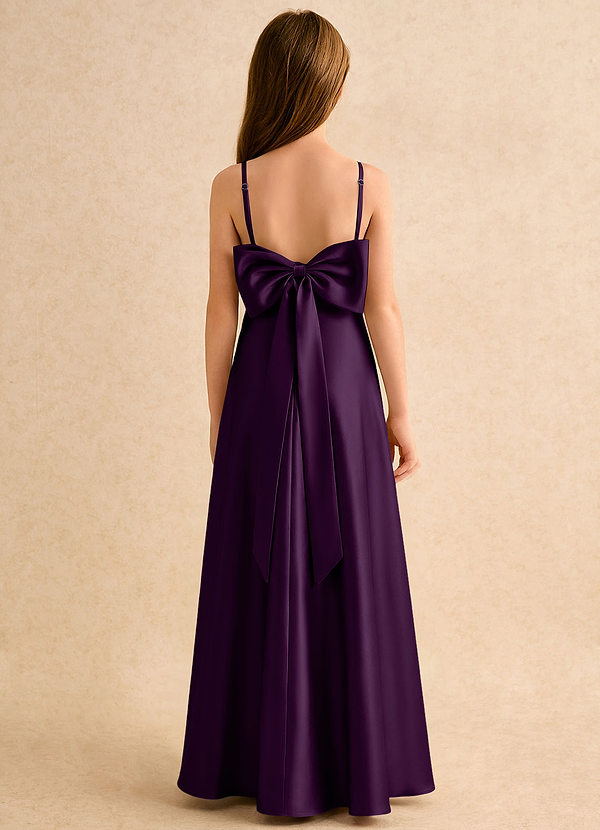 Vestido de Uva de Satin Mate de Corte en A con Lazo