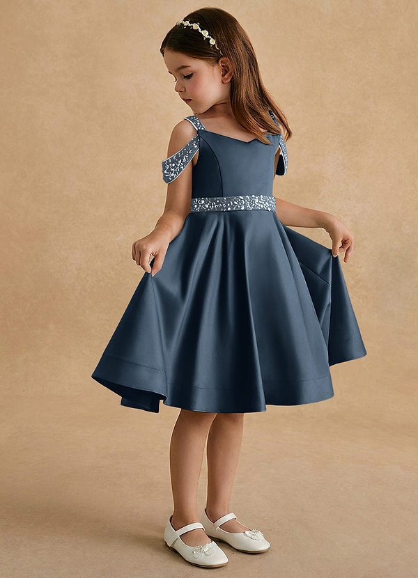 Vestido de Marfil Azul Petróleo de Encaje de Princesa