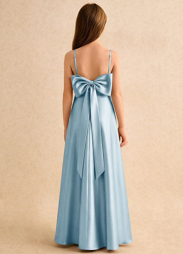 Vestido de Azul Cielo de Satin Mate de Corte en A con Lazo
