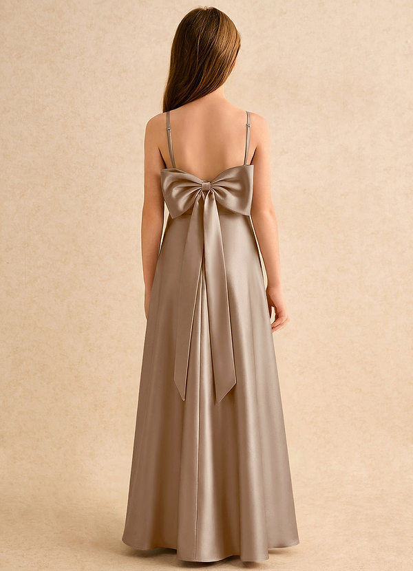 Vestido de Gris Pardo de Satin Mate de Corte en A con Lazo