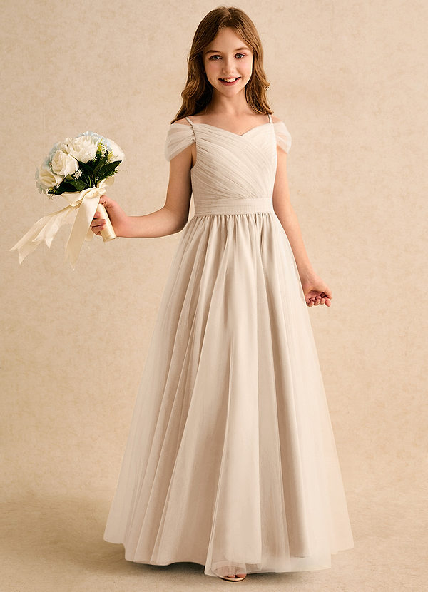 Vestido de Marfil Blanco Alabastro de Tul de Corte en A con Plisado