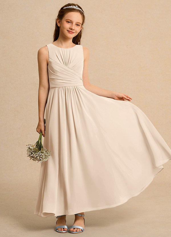 Vestido de Alabastro Blanco de Gasa de Corte en A con Plisado