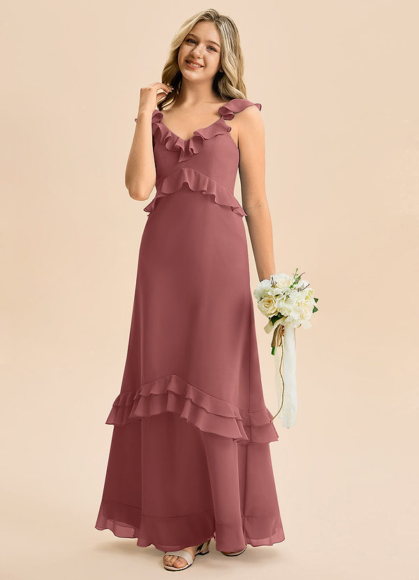 Vestido de Amatista de Gasa de Corte en A con Volante