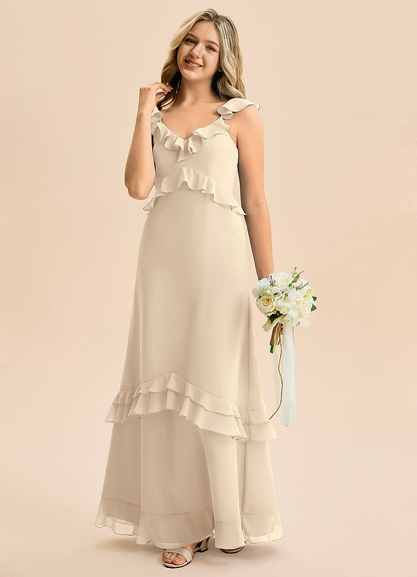 Vestido de Champán de Gasa de Corte en A con Plisado