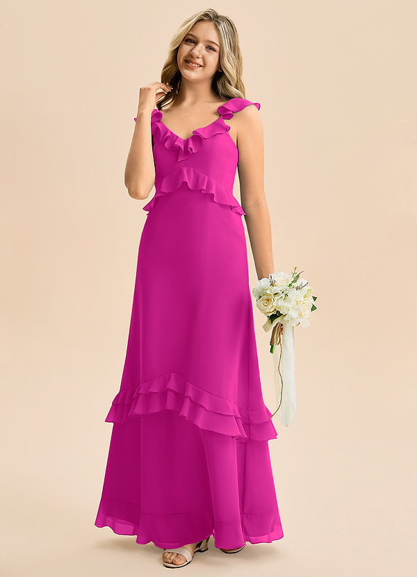 Vestido de Fucsia de Gasa de Corte en A con Volante