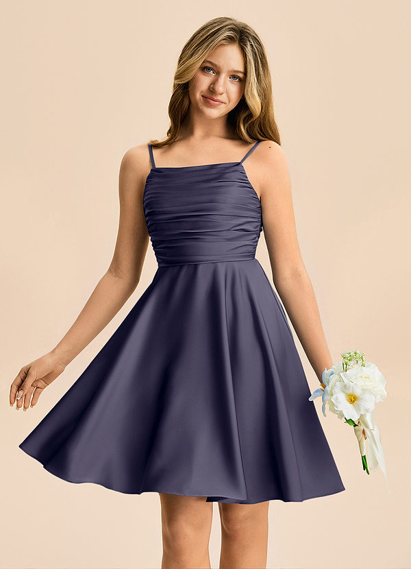 Vestido de Tormenta de Satén Elástico de Corte en A con Plisado