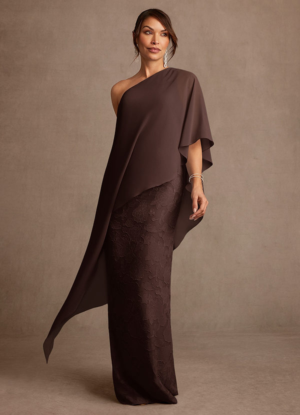 Vestido de Ganache de Devorado Floral de Corte Recto con Hombro unilateral