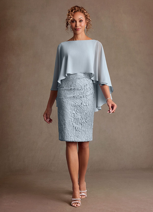 Vestido de Azul Cielo de Encaje de Corte Recto con Plisado