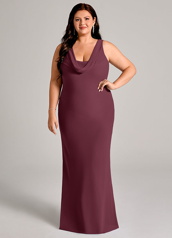 Vestido de Cabernet de Satén Elástico de Corte Sirena con Plisado