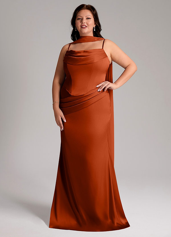 Vestido de Terracota de Satén Elástico de Corte Sirena