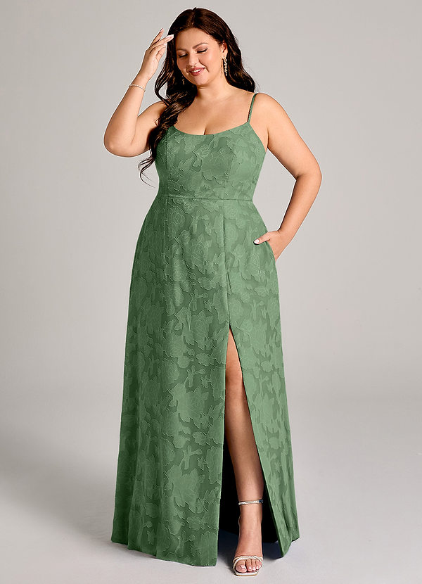 Vestido de Eucalipto de Devorado Floral de Corte en A con Corte Lateral