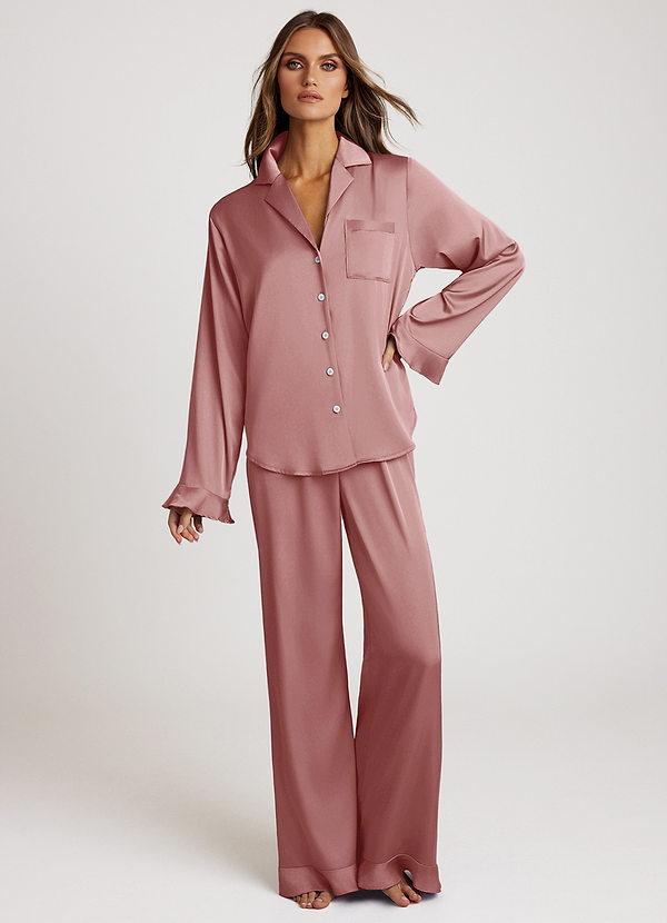 Conjunto de pijama de manga larga de satén con volantes Conjunto de pijama de manga larga de satén con volantes Conjunto de pijama de manga larga de satén con volantes Conjunto de pijama de manga larga de satén con volantes Conjunto de pijama de manga larga de satén con volantes