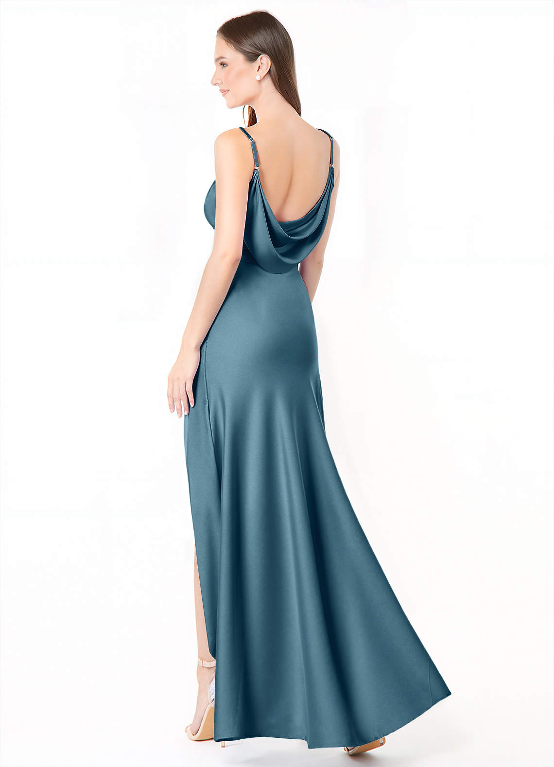 Vestido de Bermudas de Satén Elástico de Corte Sirena con Corte Lateral