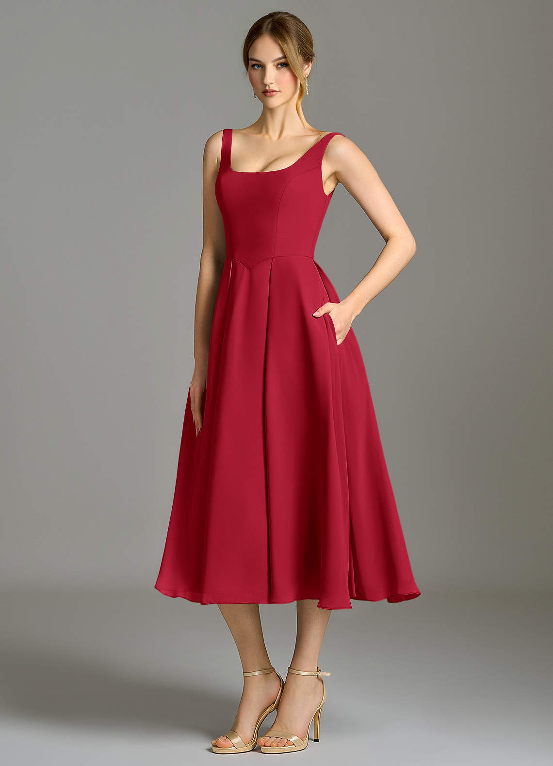 Vestido de Escarlata de Gasa de Corte en A con Plisado