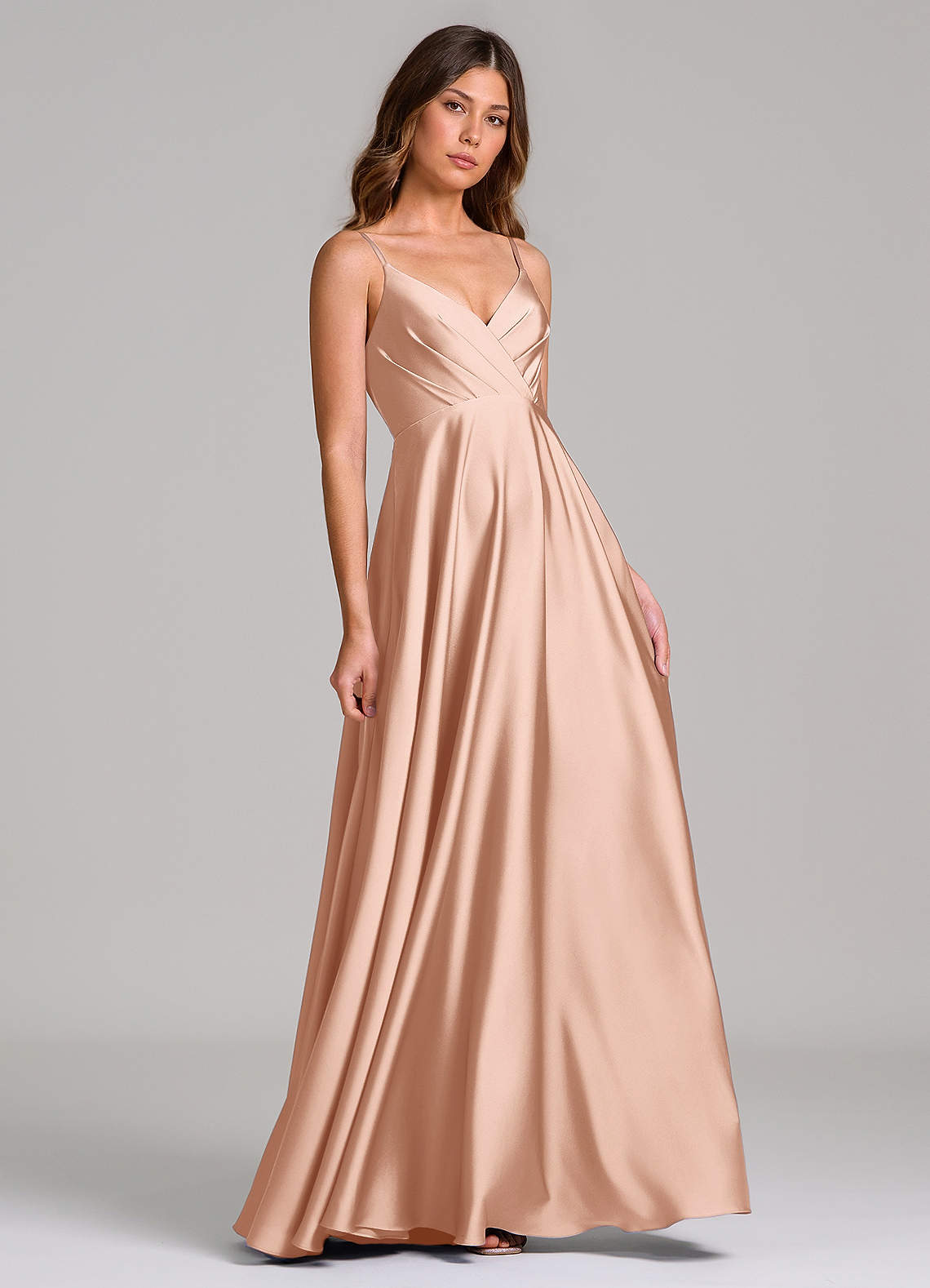 Vestido de Oro Rosa de Satén Elástico de Corte en A con Plisado