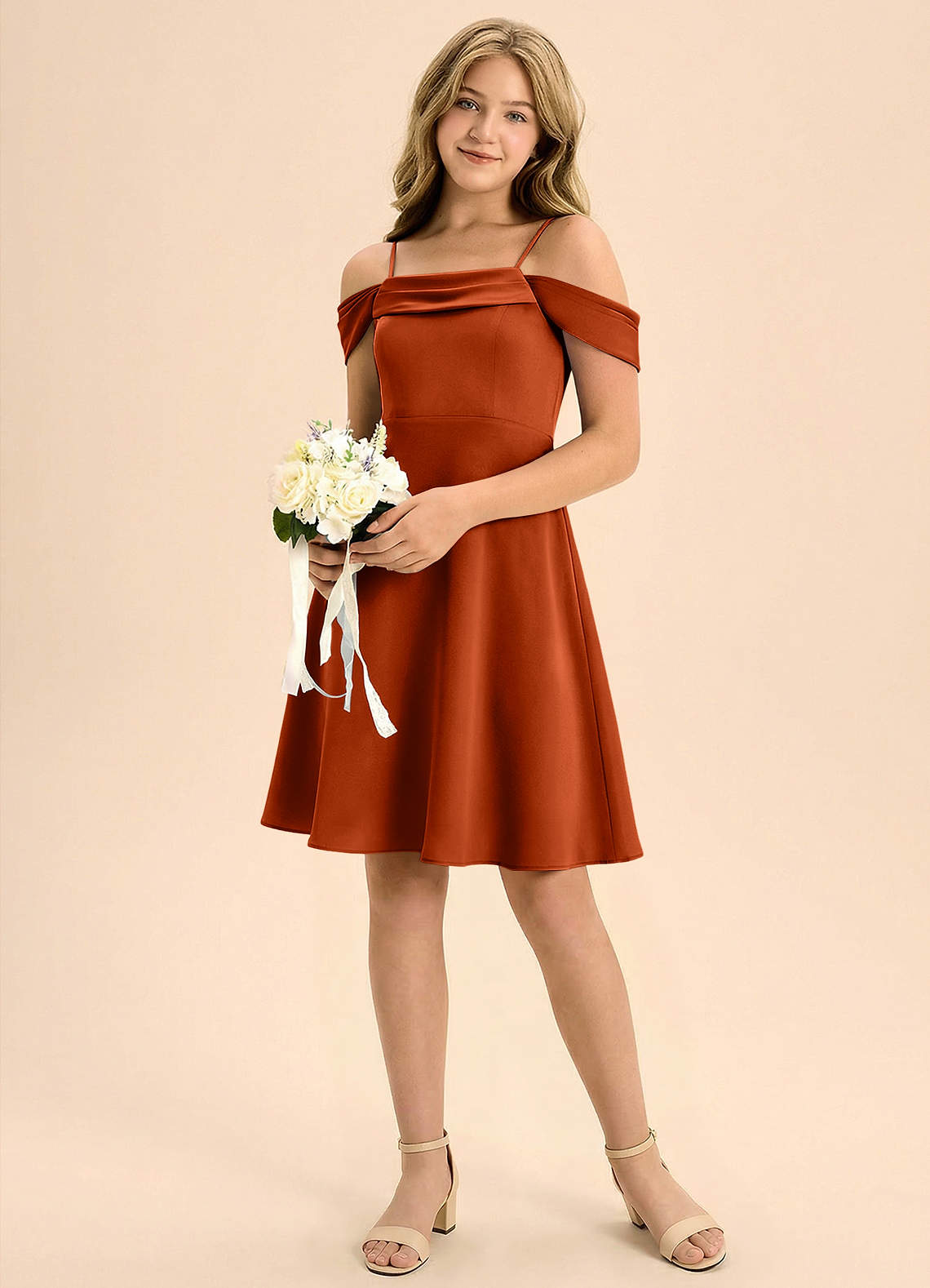 Vestido de Pimenton de Satén Elástico de Corte en A con Plisado
