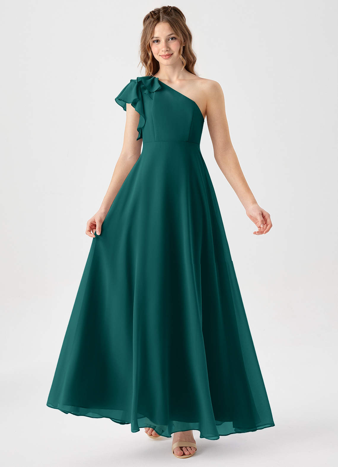 Vestido de Pavo Real de Gasa de Corte en A con Volante