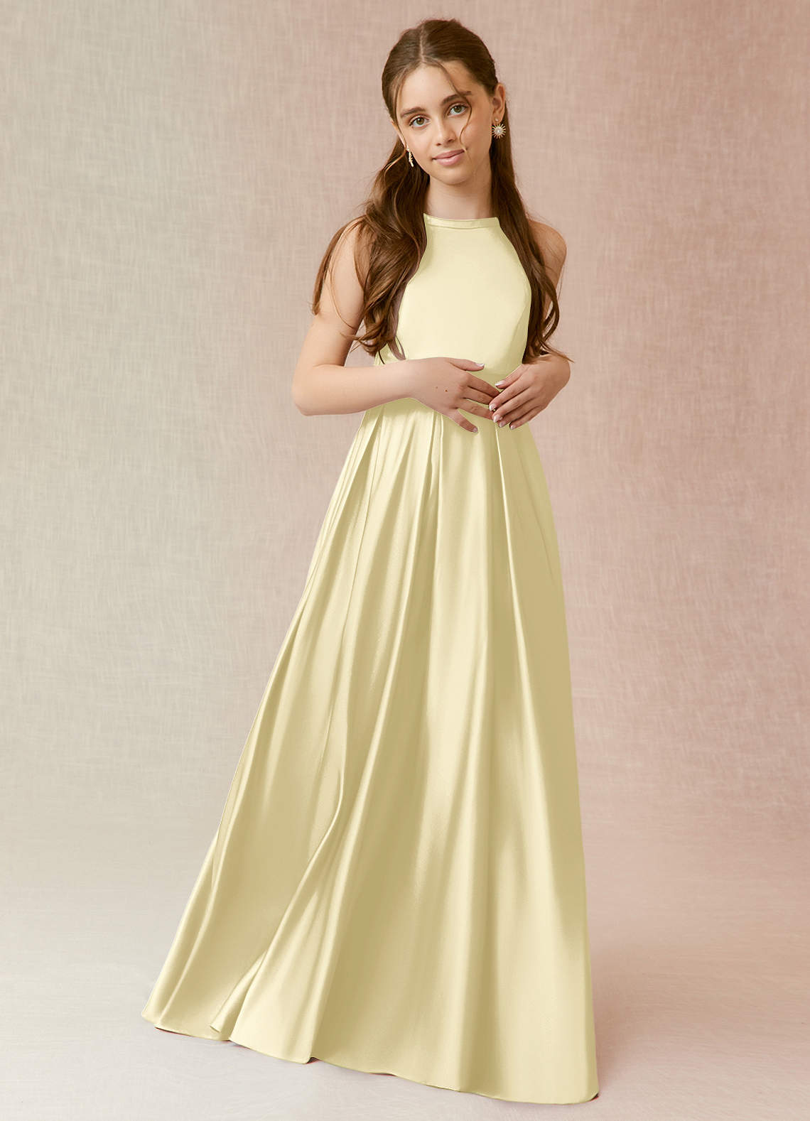 Vestido de Sorbete De Limón de Satén Elástico de Corte en A con Con bolsillos