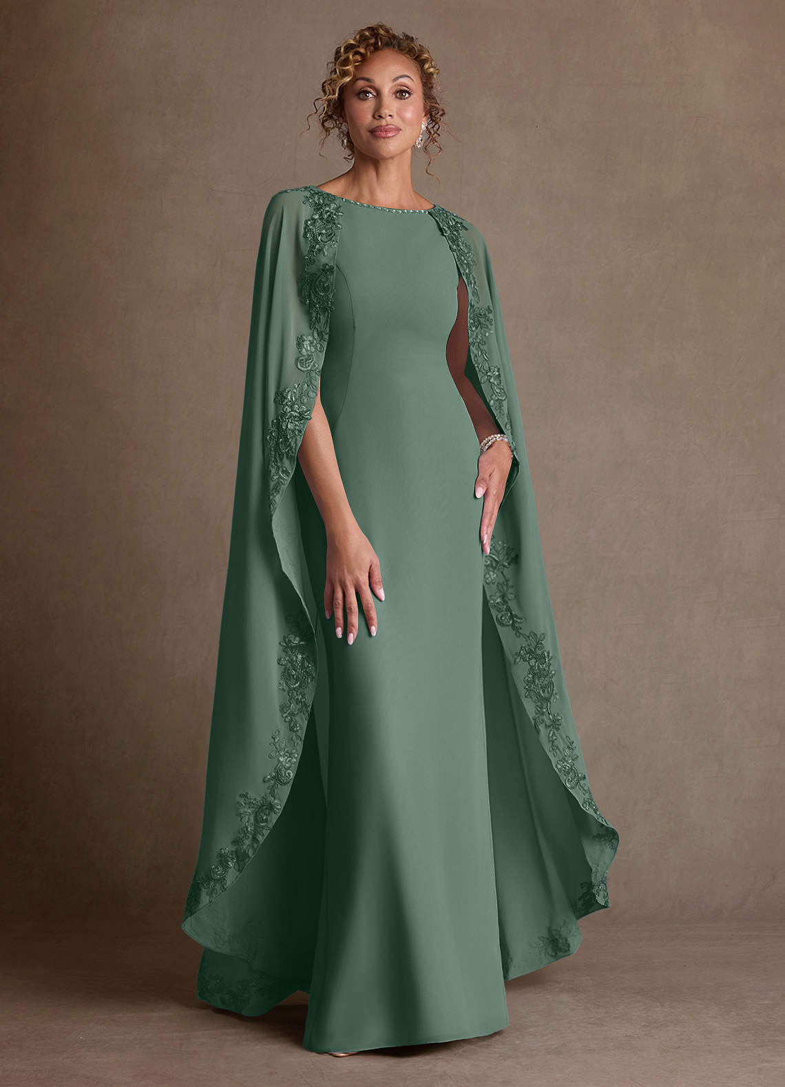 Vestido de Eucalipto de Gasa de Corte Recto con Encaje