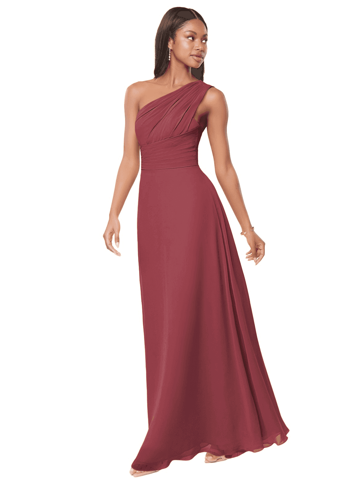 Vestido de Merlot de Gasa de Corte en A con Volante