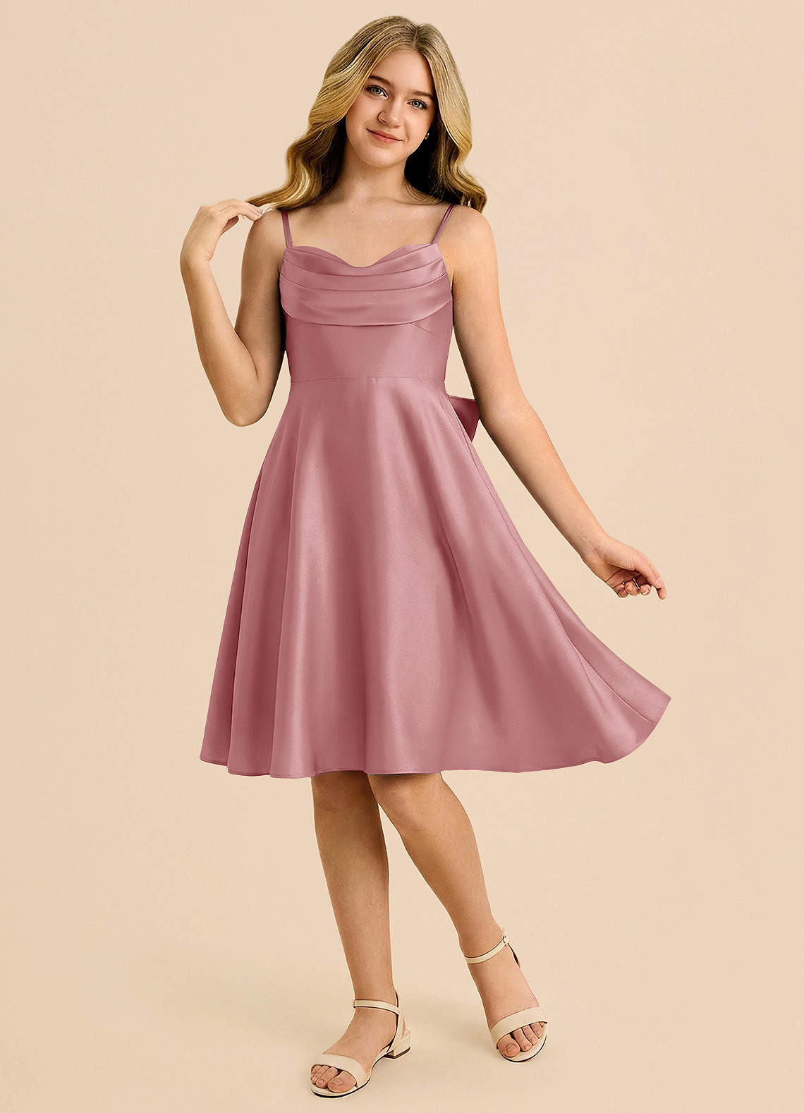 Vestido de Rosa Polvorienta de Satén Elástico de Corte en A con Escote de Corazón