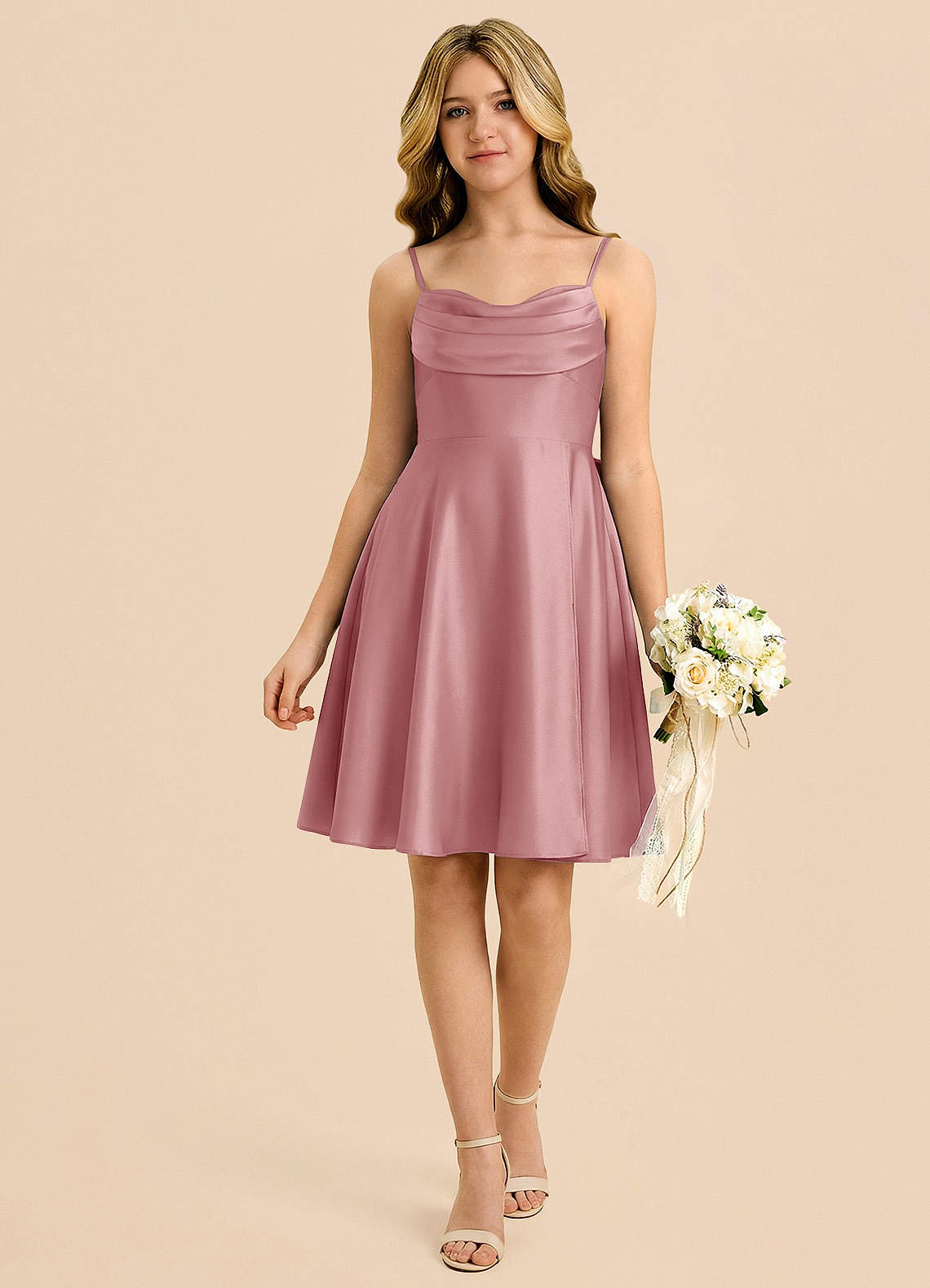 Vestido de Rosa Polvorienta de Satén Elástico de Corte en A con Escote de Corazón