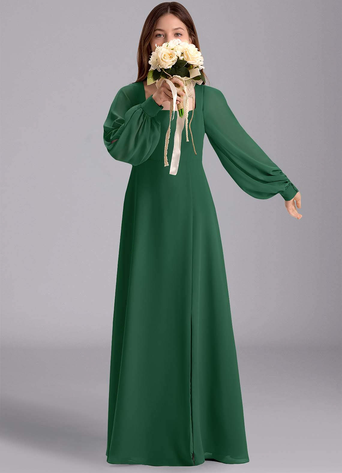 Vestido de Verde Oscuro de Gasa de Corte en A con Blusón