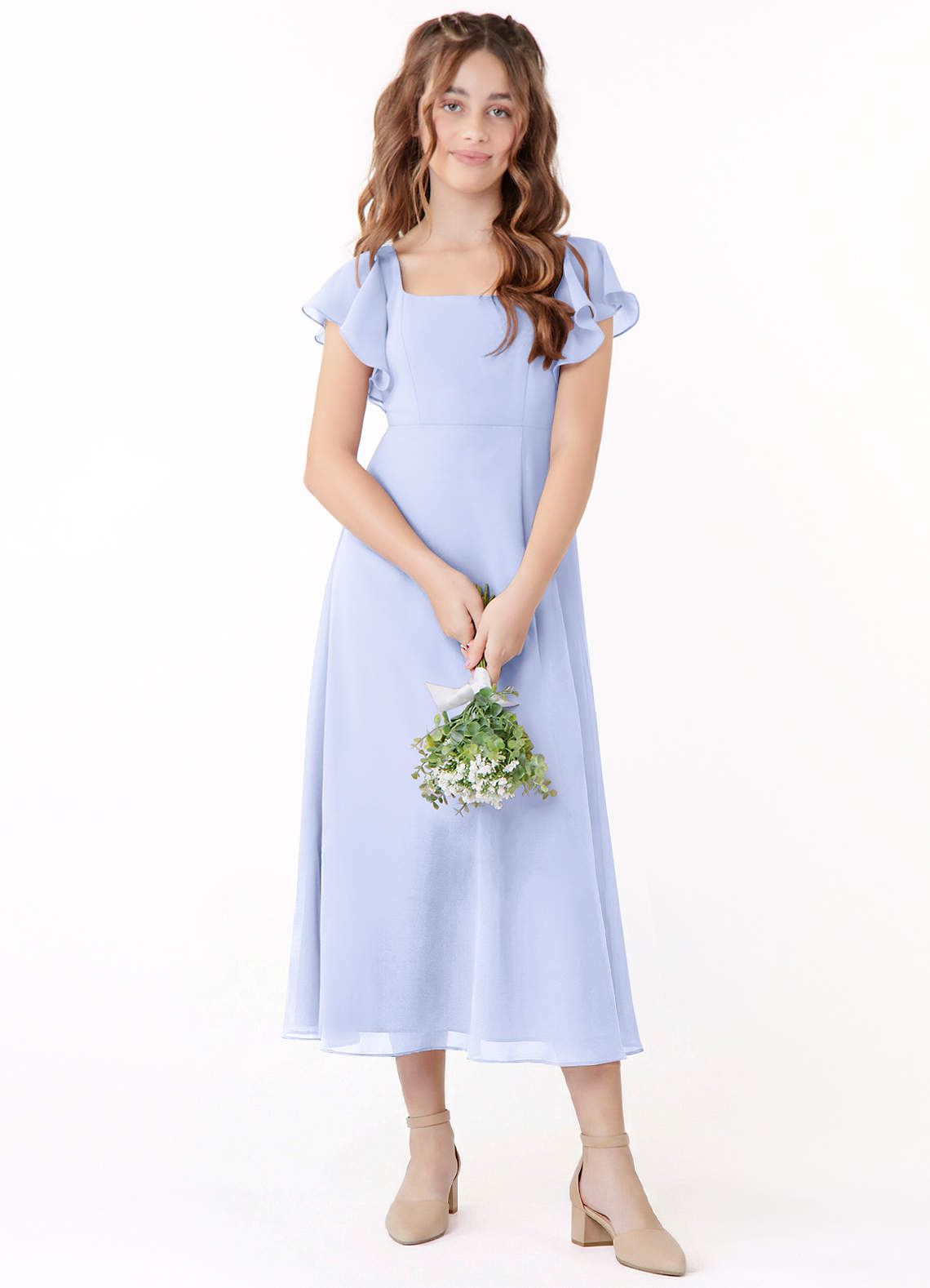 Vestido de Lavanda de Gasa de Corte en A con Volante