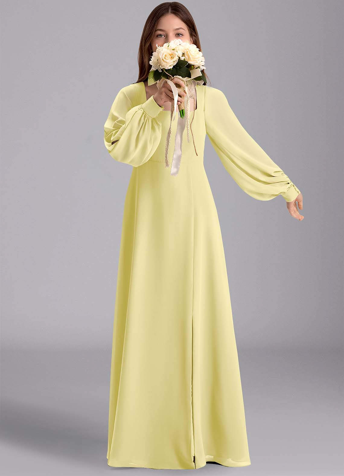 Vestido de Sorbete De Limón de Gasa de Corte en A con Blusón